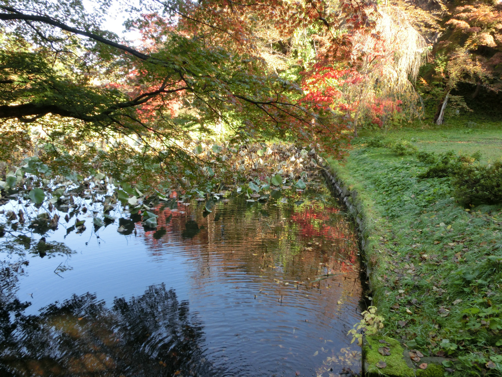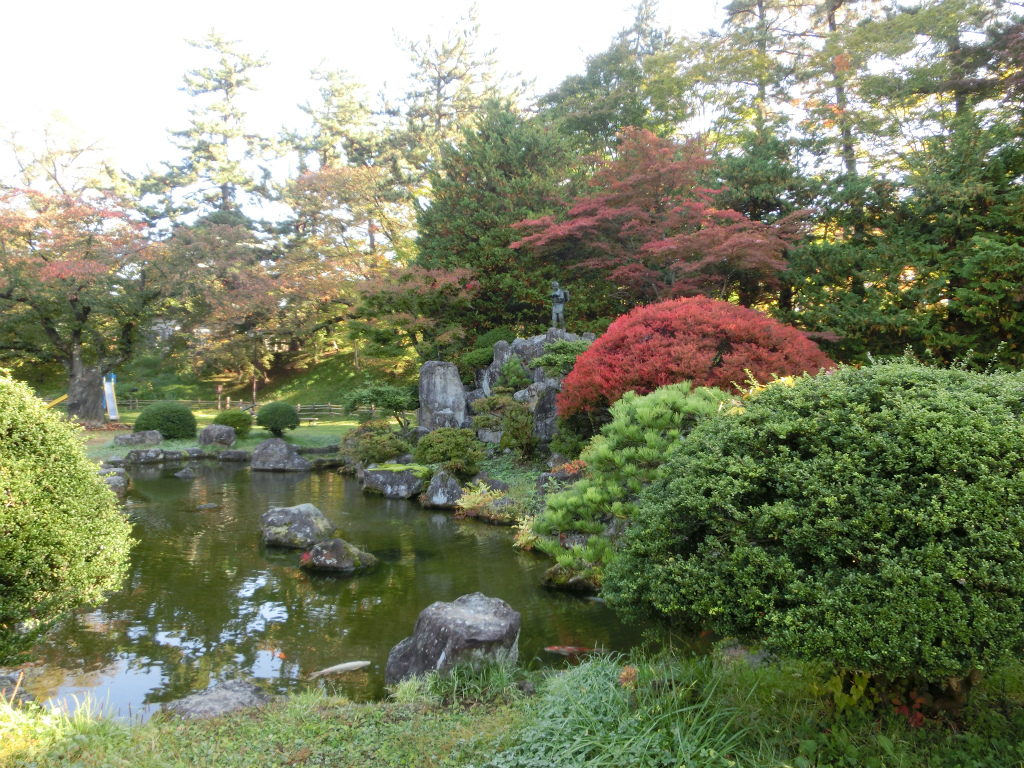 鯉が遊泳する二宮金次郎の池。小さい頃、この隣に小動物園があり、熊とクジャクのがいた。