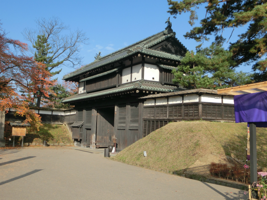 亀甲橋から最初は正門であり、唯一じっせんのなごりの矢傷がある北門を望む