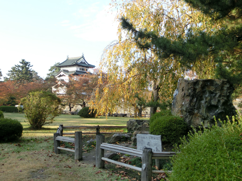 県天然記念物「鹿石」から天守遠望